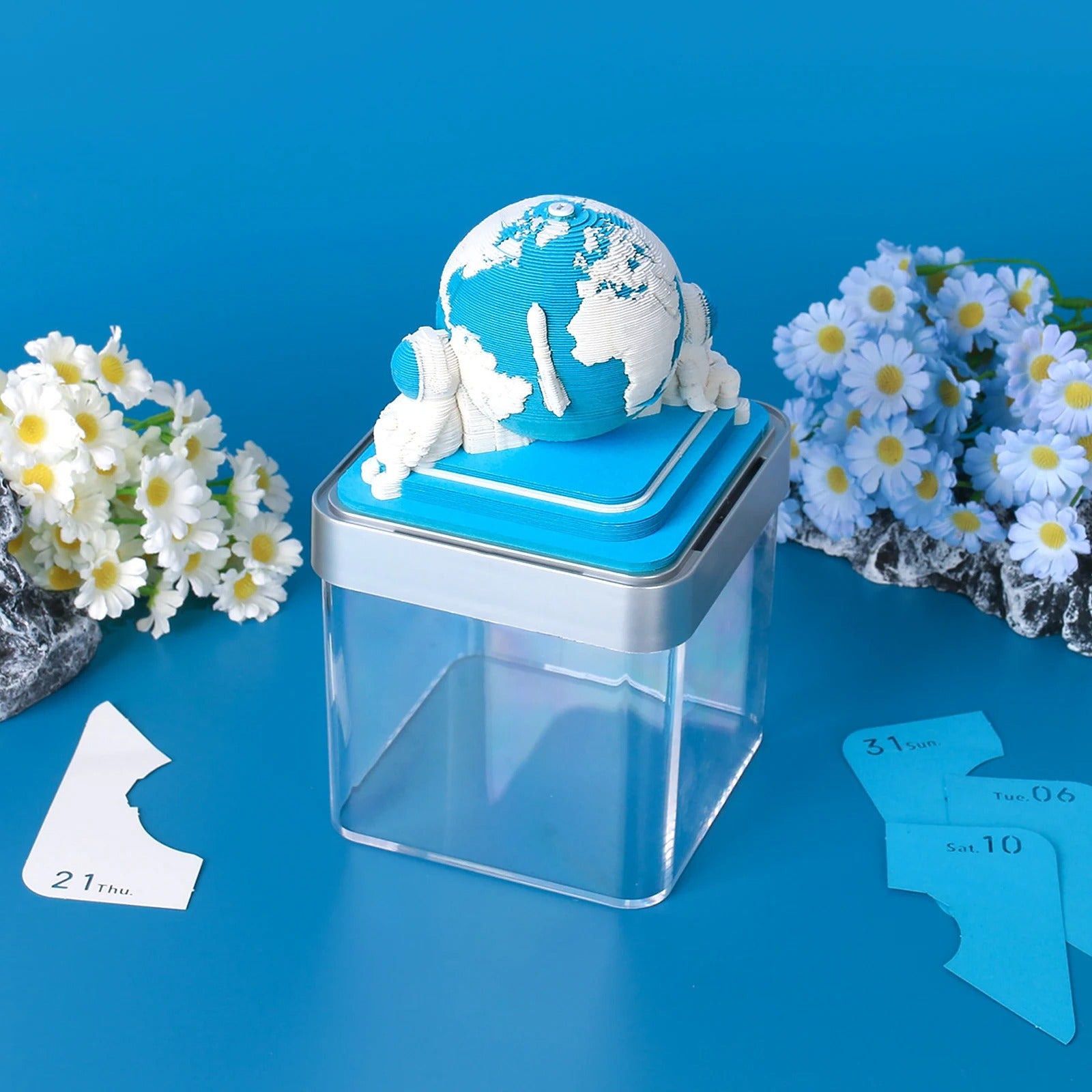 Track time with a creative twist using our unique 3D 2025 Earth Calendar! As you tear away each day, you reveal more and more of an intricately designed model of the Earth. By the end of the year, you'll have a fully-formed miniature globe, making this calendar both functional and artistic.